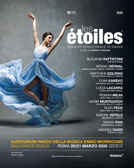 Sono tempi di conflitti e forti tensioni e Les Étoiles, gala internazionale di danza a cura di Daniele Cipriani, vuole condividere la propria visione immaginativa di un mondo migliore e farsi portatore di un messaggio di amore e armonia. Le grandi stelle del balletto che varcheranno il palcoscenico della Sala S. Cecilia, Auditorium Parco della Musica Ennio Morricone, il 20 marzo alle ore 21 e il 21 marzo alle ore 17, offriranno la loro arte affinché essa sia non solo una delizia per gli occhi ma, al contempo, un balsamo per gli animi in tempi cupi, affinché la bellezza delle loro danze sia non semplice evasione, ma richiamo alla nostra comune umanità.