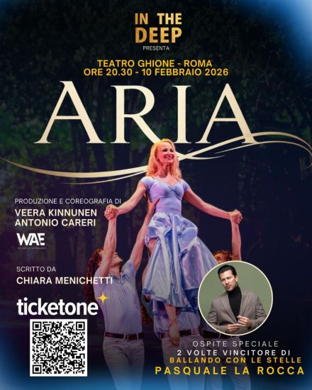 Dopo il successo delle prime date, “Aria”, lo spettacolo prodotto e coreografato da Veera Kinnunen e Antonio Careri (We Are Entertainment) e scritto da Chiara Menichetti, arriva a Roma per una tappa molto attesa della tournée italiana. L’appuntamento è per martedì 10 febbraio alle ore 20.30 al Teatro Ghione. Ospite Pasquale La Rocca di “Ballando con le stelle”.