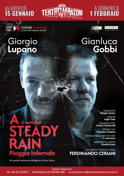 Al Teatro Manzoni di Roma è in scena un lavoro molto particolare, dal titolo A Steady Rain (Pioggia infernale), scritto da un drammaturgo statunitense contemporaneo, Keith Huff , uno degli autori di fiction di successo come House of Cards. Si tratta in realtà di un lavoro complesso e coraggioso insieme. Complesso perché i due protagonisti alternano monologhi e dialoghi, facendo così rivivere sul palcoscenico la loro storia personale, ma anche la storia dei vari personaggi che hanno la fortuna o la sfortuna di incontrarli nel loro percorso della vita. In scena fino al primo febbraio.